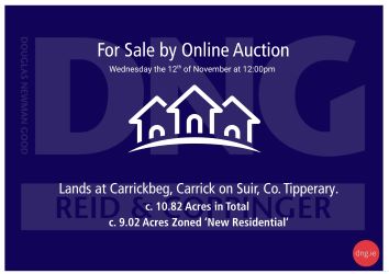 The subject lands extend to c. 4.379 Hectares / c. 10.82 Acres of which c. 9.02 Acres are Zoned 'New Residential'. This superb development site is located in Carrick-on-Suir in Co. Tipperary, on the Southern banks of The River Suir at Carrickbeg. The lands are flanked by two regional roads at either end of the site, with the Waterford Road (R680) at the Northern end of the site, and the Lemybrien to Carrick-on-Suir Road (R676) at the Southern end of the site, which also forms the border between Co. Tipperary and Co. Waterford. The site is rectangular in shape, gently sloping in a Southerly direction, with access possible from both roads.